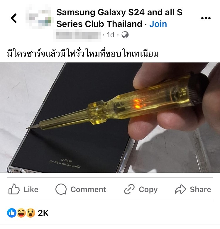 วันนี้ (2-Feb-24) เห็นโพสต์หนึ่งในกลุ่มผู้ใช้งาน SAMSUNG Galaxy S24 ถามผู้ใช้งานคนอื่น ๆ ว่า เจอไปดูดเหมือนกันบ้างไหม?
